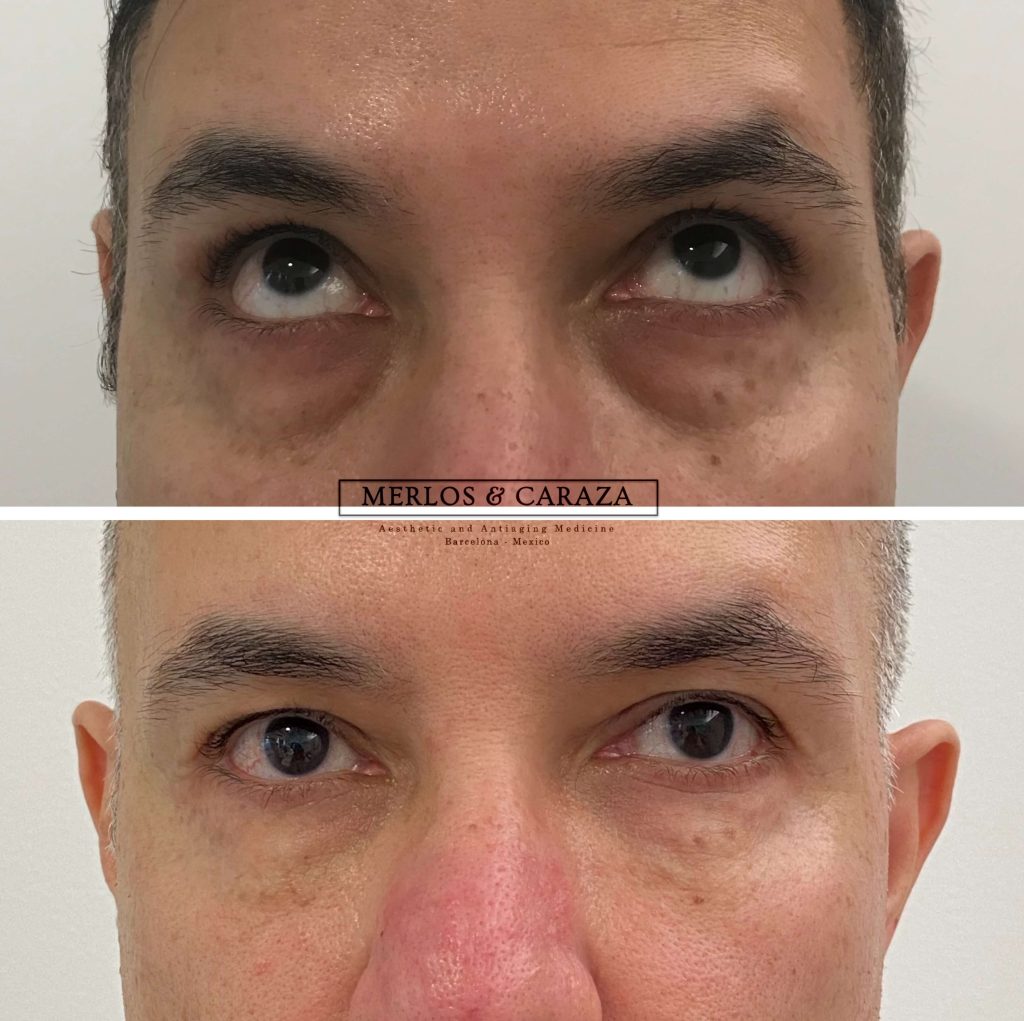 Los resultados de la corrección de ojeras con ácido hialurónico son generalmente visibles de inmediato. La zona bajo los ojos se ve más homogenea y las ojeras se ven menos pronunciadas, lo que da como resultado una apariencia más descansada.