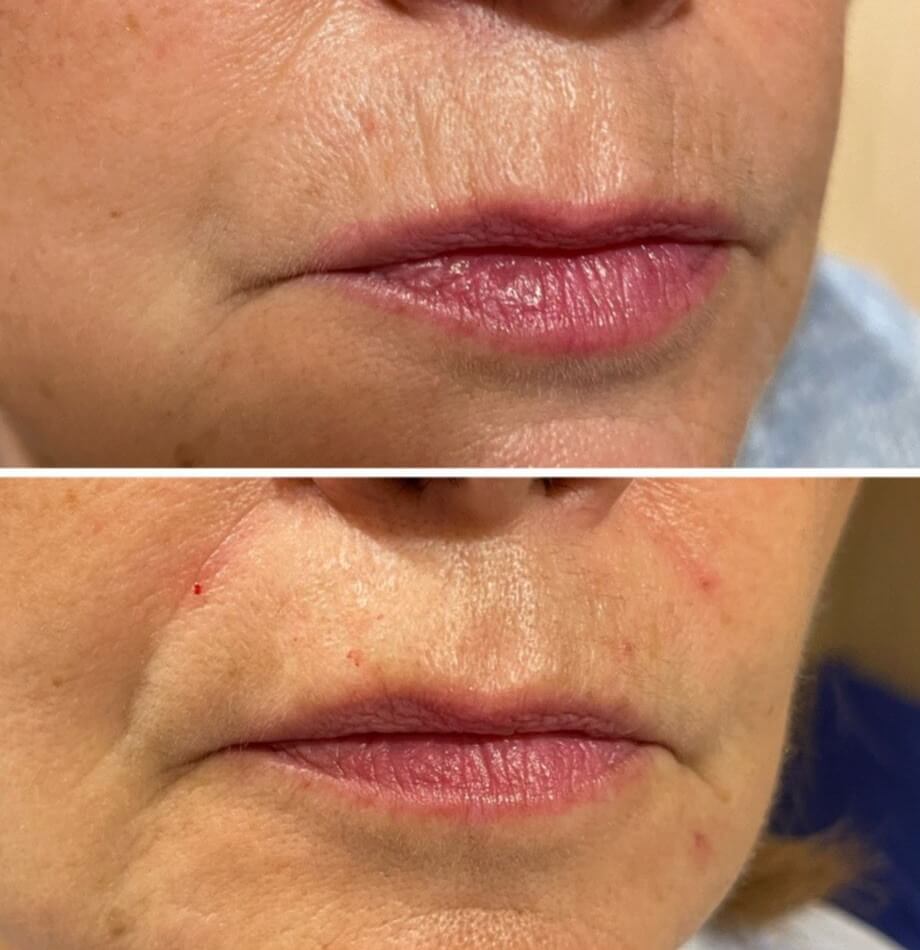 Los resultados de la corrección de «código de barras» con ácido hialurónico son generalmente visibles de inmediato. Las arrugas alrededor de la boca se ven menos pronunciadas, y la piel adquiere un aspecto más suave, juvenil e hidratado.
