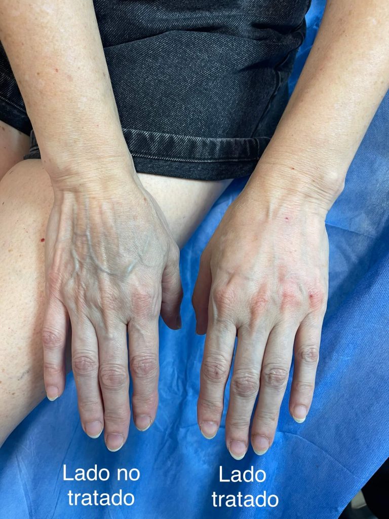 Se trabaja ambas manos, se realiza una valoración integral de la zona para determinar el tratamiento ideal para cada paciente, ya se enfocarse más en manchas, flacidez, tensión muscular, entre otras. Se pueden complementar distintos tratamientos para mejorar múltiples cuestiones.